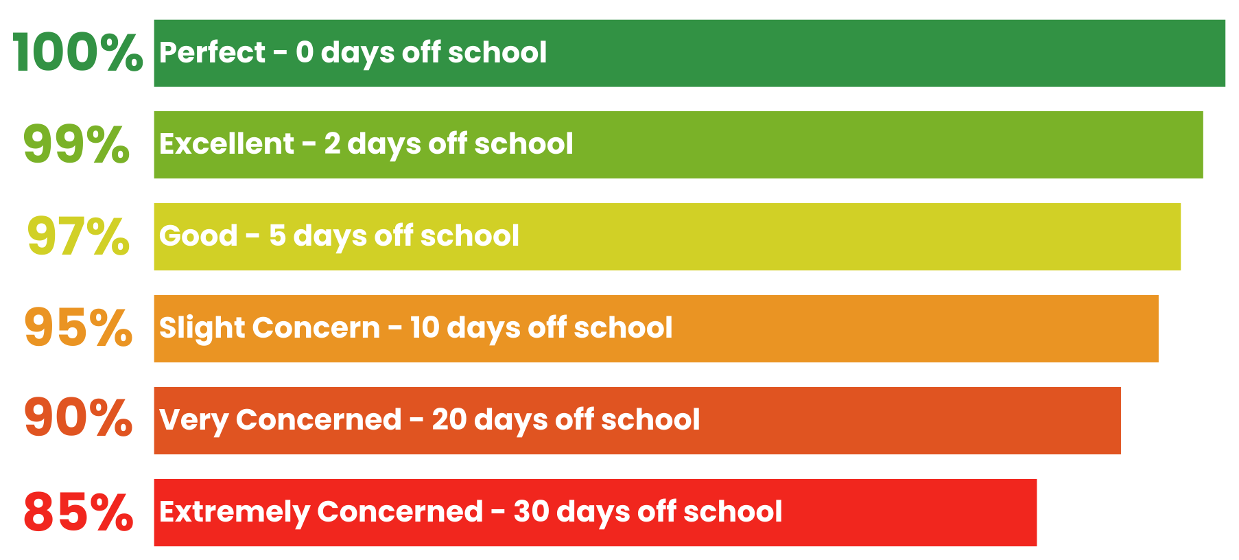 If attendance drops below 97% the school will contact parents immediately to put a plan in place to make improvements.